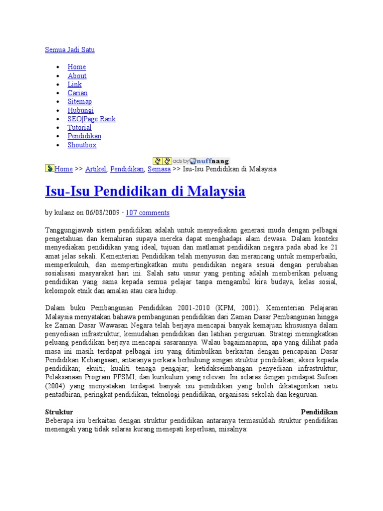 Isu Isu Pendidikan Di Malaysia Home Artikel Pendidikan Semasa