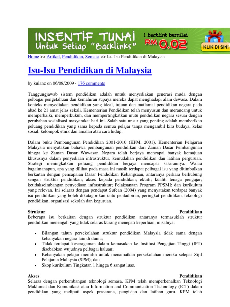 Isu Pendidikan Di Malaysia Ulasan Berkenaan Artikel Penguasaan