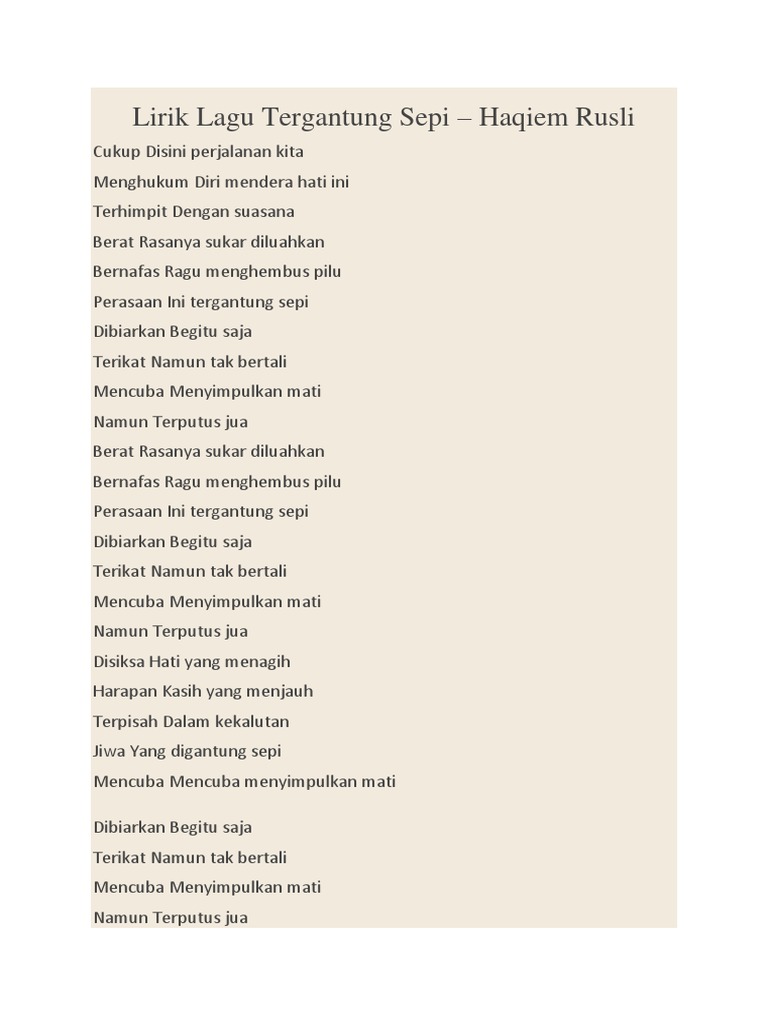 Lirik Lagu Haqiem Rusli Tergantung Sepi Sahabat Musik