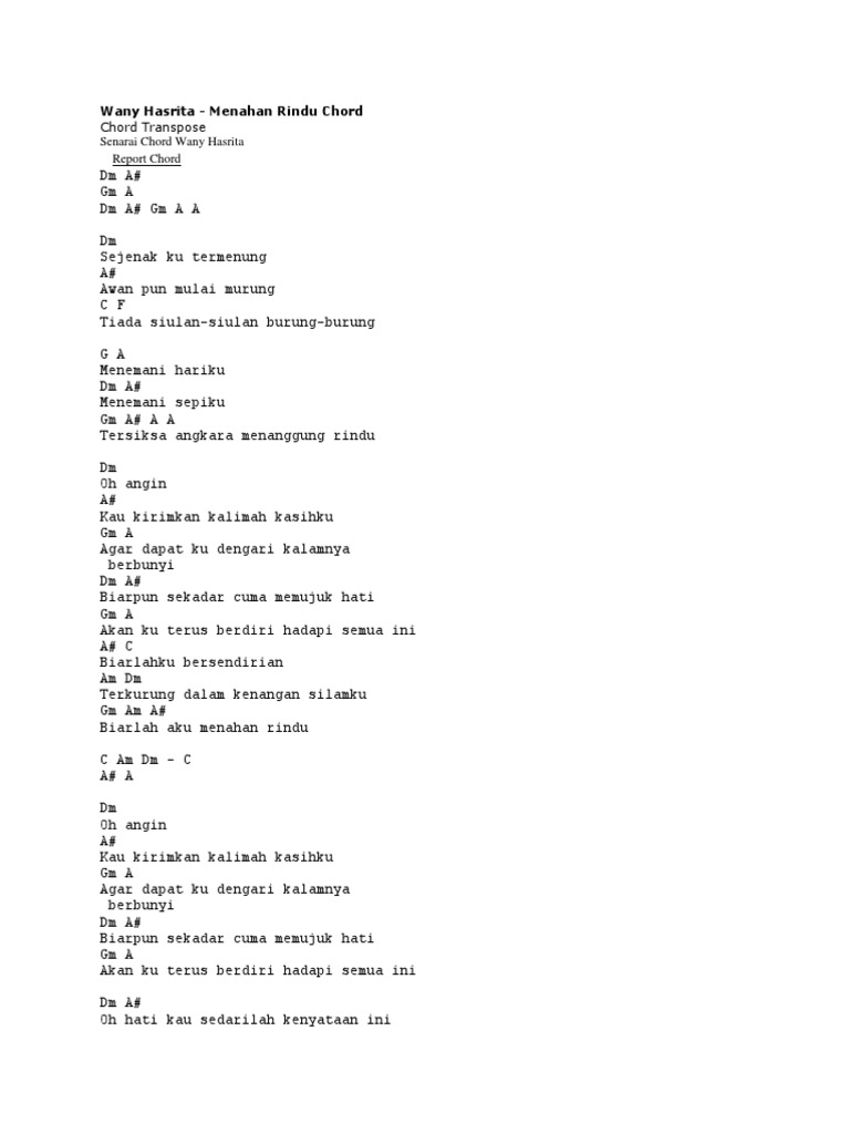 Chord Menahan Rindu By Wany Hasrita Chordlicious