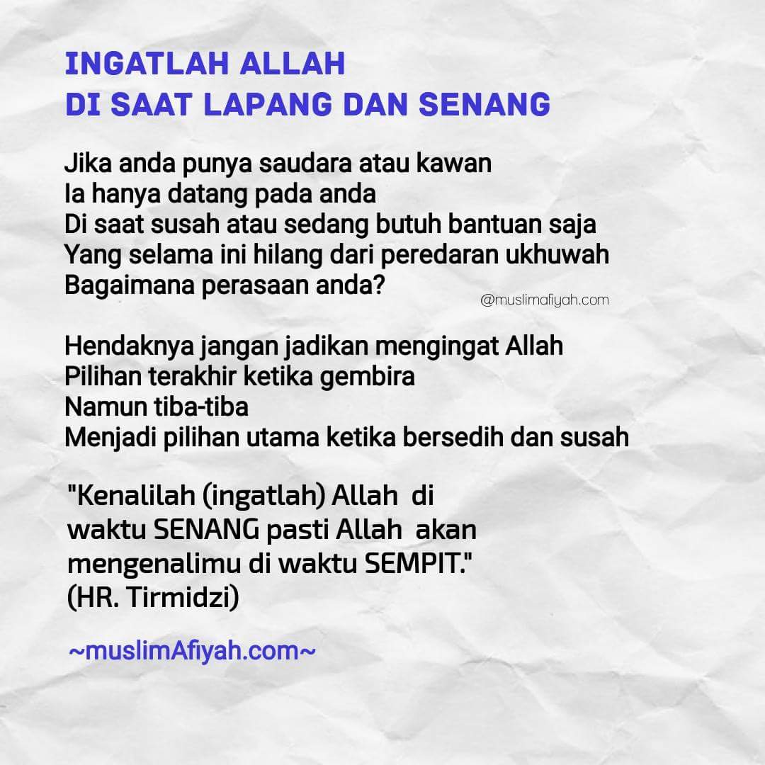 Ingatlah Allah Di Waktu Senang Pasti Allah Akan Mengenalimu Di