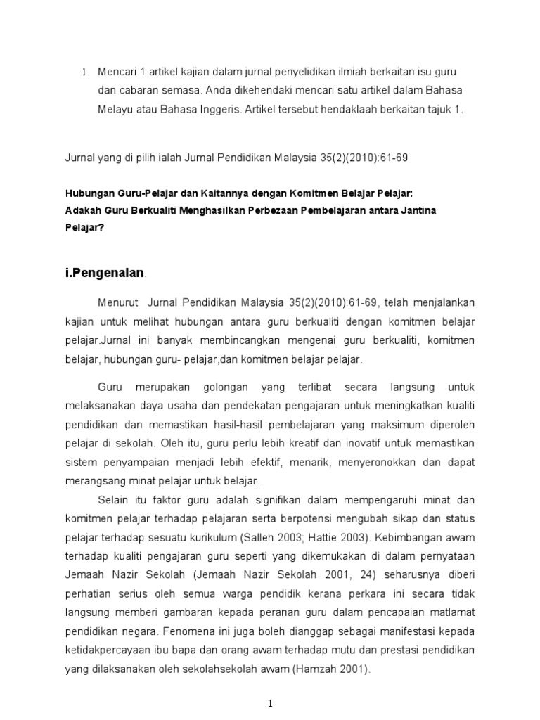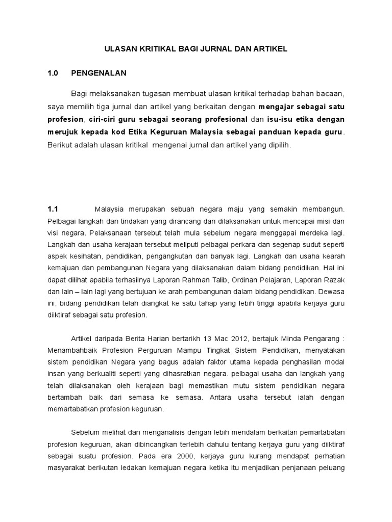 Tugasan Ulasan Kritikal Jurnal Dan Artikel