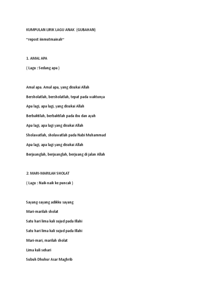 Doc Kumpulan Lagu Tpq Tpa Moh Suhud Abdullah Academia Edu