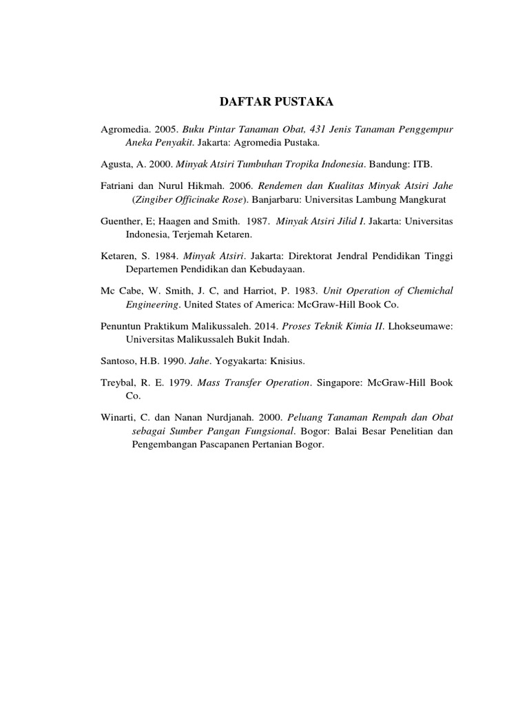 Daftar Pustaka Agusta A 2000 Minyak Atsiri Tumbuhan Tropika