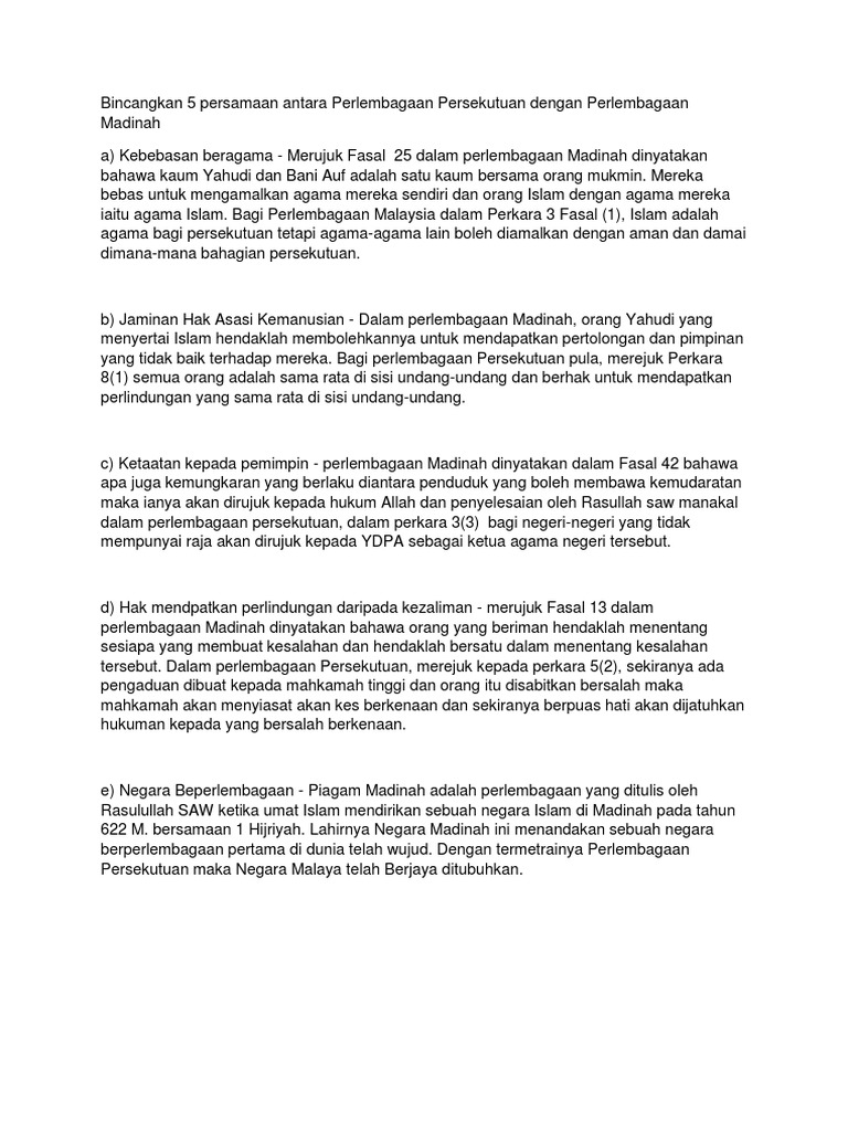 Bincangkan 5 Persamaan Antara Perlembagaan Persekutuan