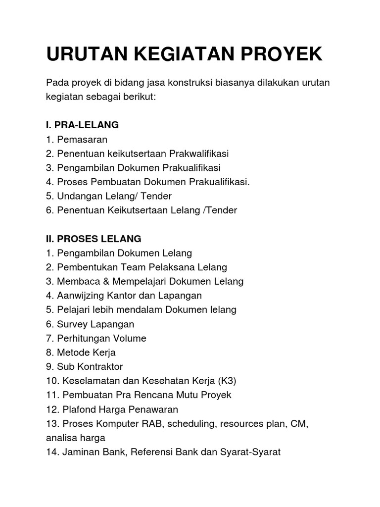 Urutan Kegiatan Proyek